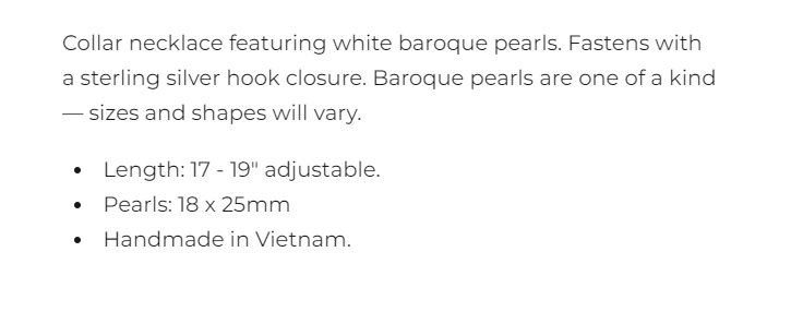 White Baroque Pearl Collar Necklace
