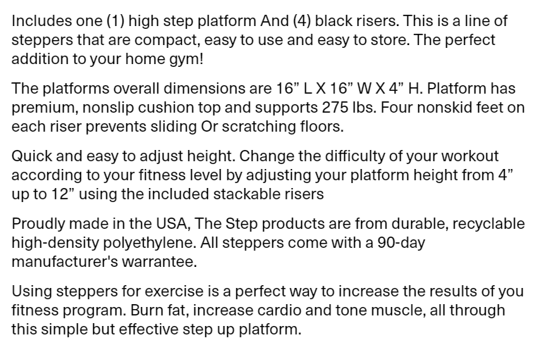 The Step Adjustable High Step Aerobic Platform with 4 Risers - Made in the USA - Teal
