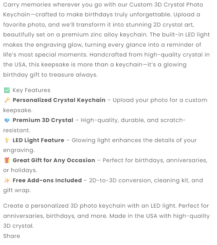 3D Crystal Photo Rectangle Keychain – LED Light Birthday Gift