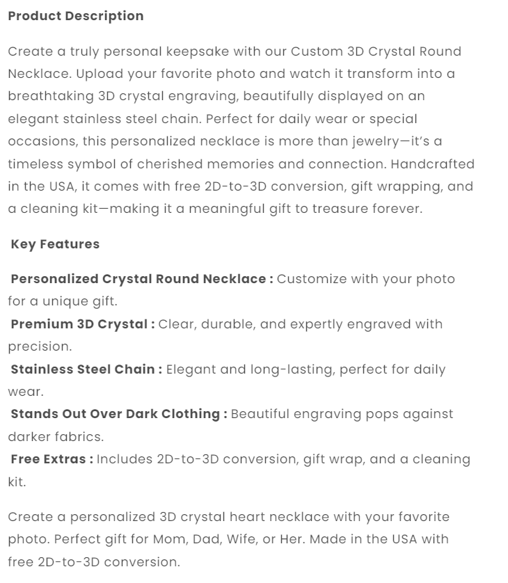 3D Crystal Round Necklace-Custom gift for Women,Men - Valentine's Day