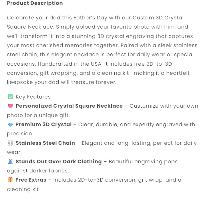 3D Crystal Square Necklace – Father's Day Gift