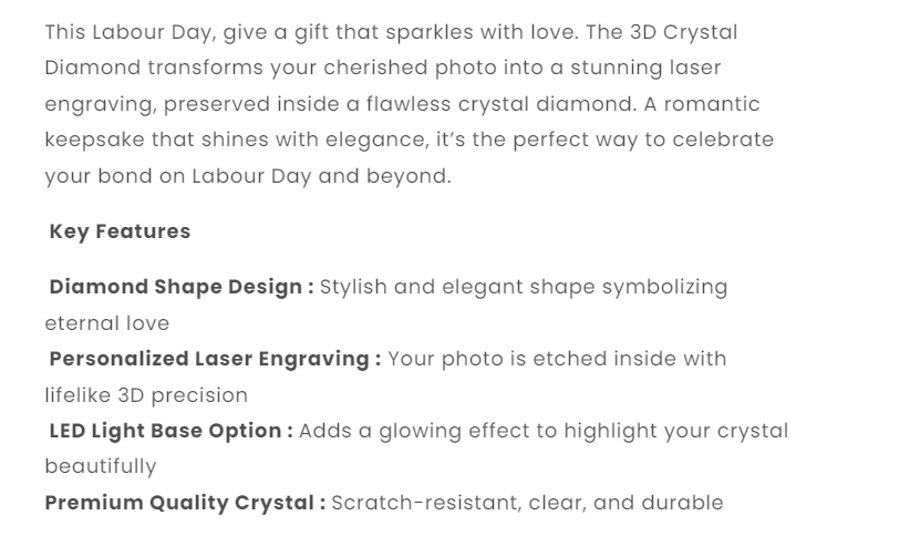 3D Diamond Crystal For Labour Day Gift