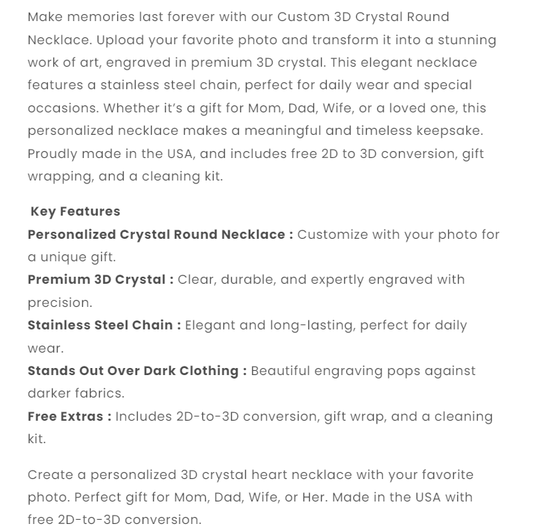 Anniversary Day 3D Crystal Round Necklace – Custom Gift for Women, Men