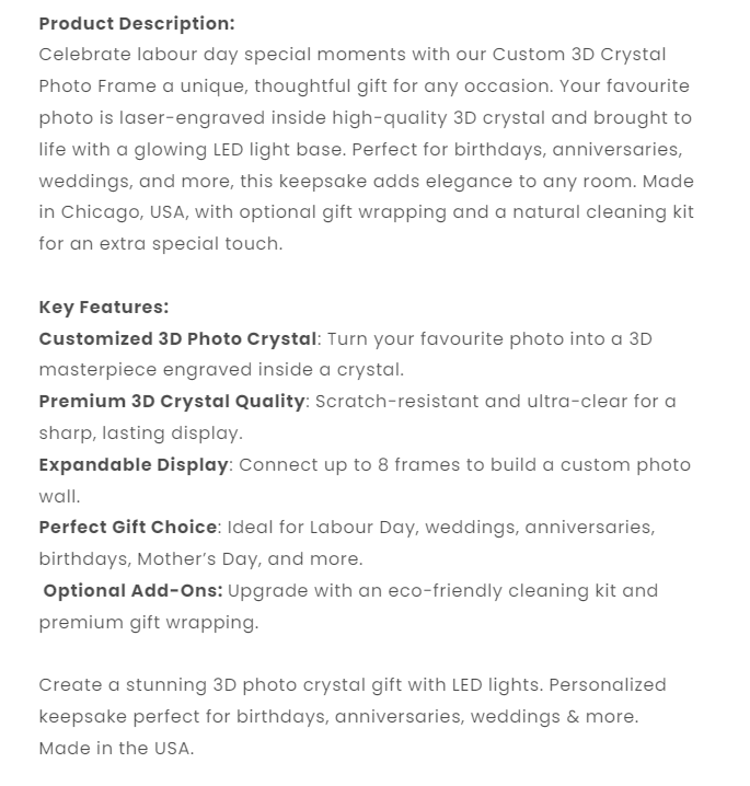 Custom 3D Crystal Cube Photo Frame with LED Lights – Labour day Gift