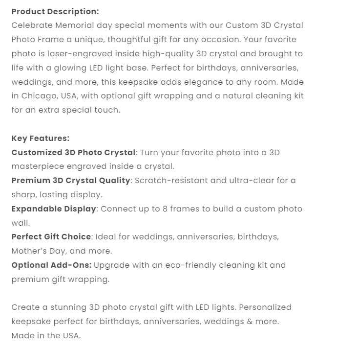 Custom 3D Crystal Cube Photo Frame with LED Lights – Memorial Day